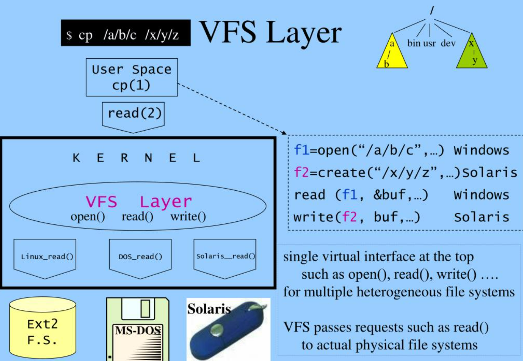 --- #### Design and implementation of the file system -- cache Virtual page storage -- page cache - Virtual pages in the virtual address space can be mapped to local external memory files - Page cache for file data blocks - File data blocks are mapped into pages in virtual memory - File read/write operations are converted to memory accesses - May result in page faults and/or dirty pages - Problem: The page replacement algorithm needs to coordinate the number of pages between the virtual storage and the page cache